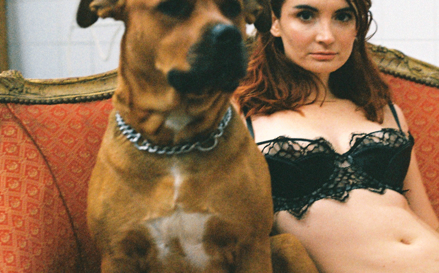 Aura est le nom de la chienne très joueuse qui est dans les photos. Son brun “cuir”, le chat tout en rousseur et ce canapé dans son jus donnent à une de nos plus félines modèles le ton, la chaleur et le décors de cette rencontre gentiment animale. Les pièces de lingerie sont issues de notre sélection dans la marque Loveday London avec laquelle nous travaillons depuis deux ans maintenant avec toujours autant de ravissement. La créatrice allie si bien la technicité de son vêtement avec un système de réglages unique s’adaptant à toutes les morphologies, des matériaux précieux: cuir d’agneau plongé, soie, tulle et dentelle et un style unique, “hardcore romance”, qu’elle décline dans des collections très variées mais toutes inspirées du même esprit. Made in Uk, available in Pigalle.